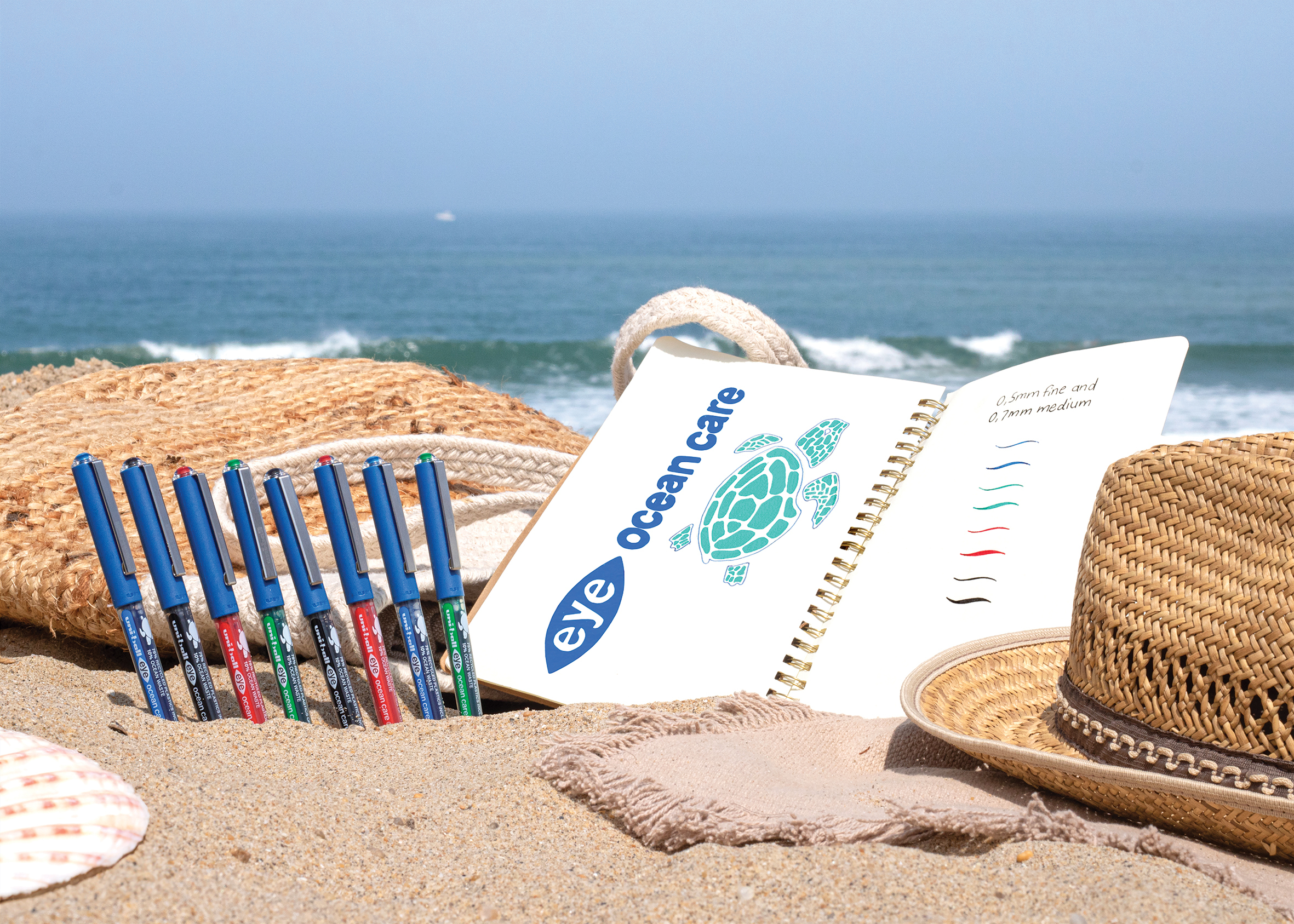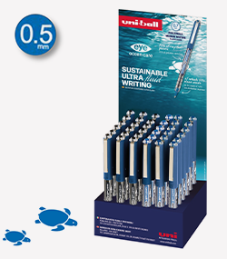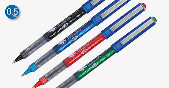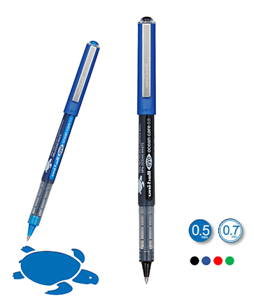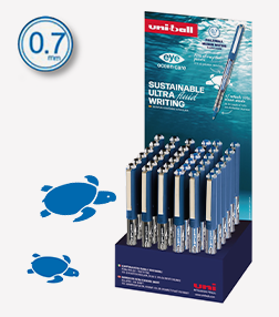 Der uni-ball eye Ocean Care ist ein umweltfreundlicher Tintenroller aus über 75% recyceltem Kunststoff, 10% davon aus dem Ozean