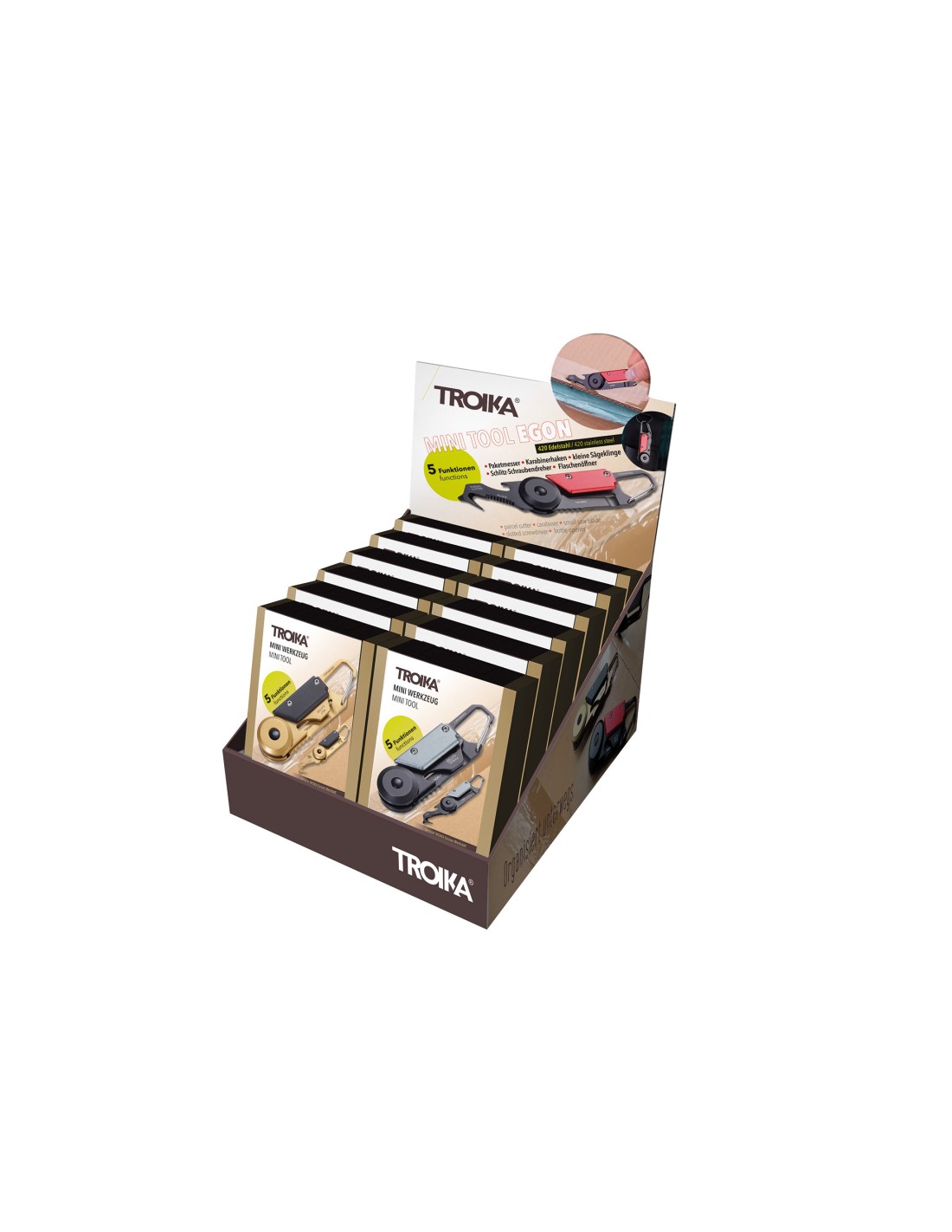 Thekendisplay inkl. 12 x EGON Mini-Werkzeug (KTL26/..), vorsortiert (je 4 x KTL26/GO, ../RD, ../TI), zur Selbstbedienung, Pappe, bedruckt, matt, mehrfarbig