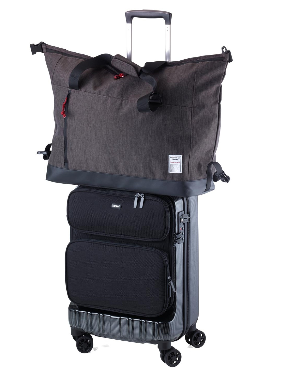 Reisetasche, Hauptfach mit Reißverschlussfach und 3 Stecktaschen, inkl. Wäschebeutel, Fronttasche mit Reißverschluss, 2 Tragegriffe, abnehmbarer, verstellbarer Schultergurt, seitliche Steckverschlüsse zur Versteifung bei kompletter Befüllung, Schlaufe zur Befestigung am Trolley, abgesetzter Standboden, Kapazität ca. 50 Liter, Tragkraft bis zu 15 kg, Polyester, anthrazit/schwarz