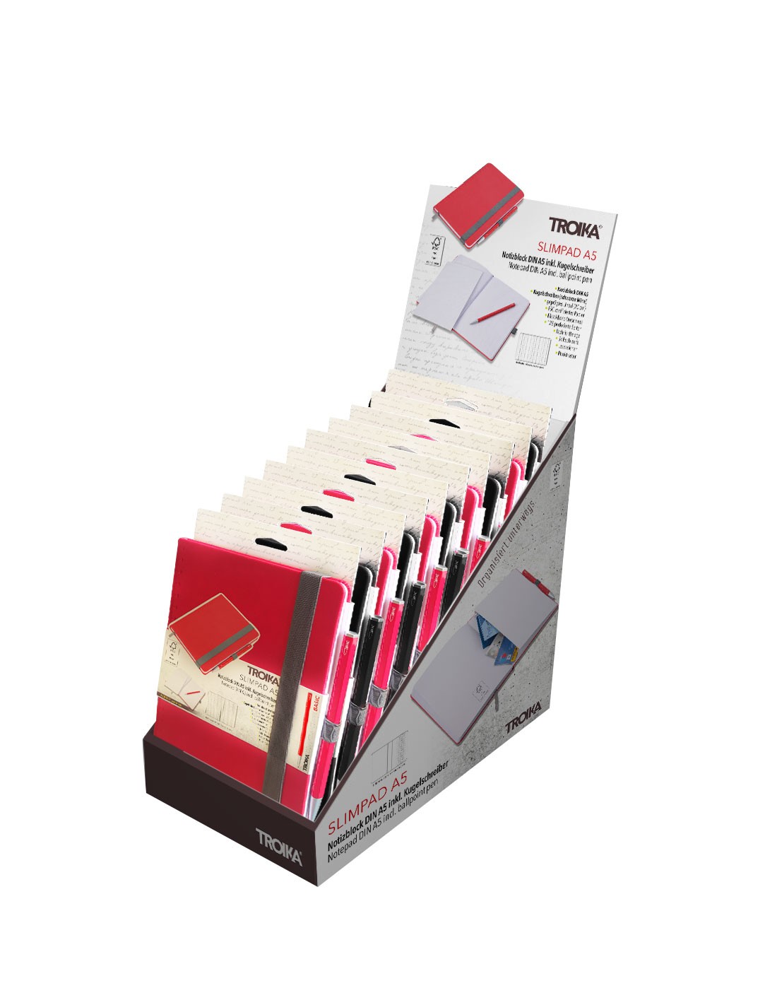 Thekendisplay inkl. 10 x SLIMPAD A5 Notizblock (NPP40/..), vorsortiert (je 5 x NPP40/BK, NPP40/RD), zur Selbstbedienung, Pappe, bedruckt, matt, mehrfarbig
