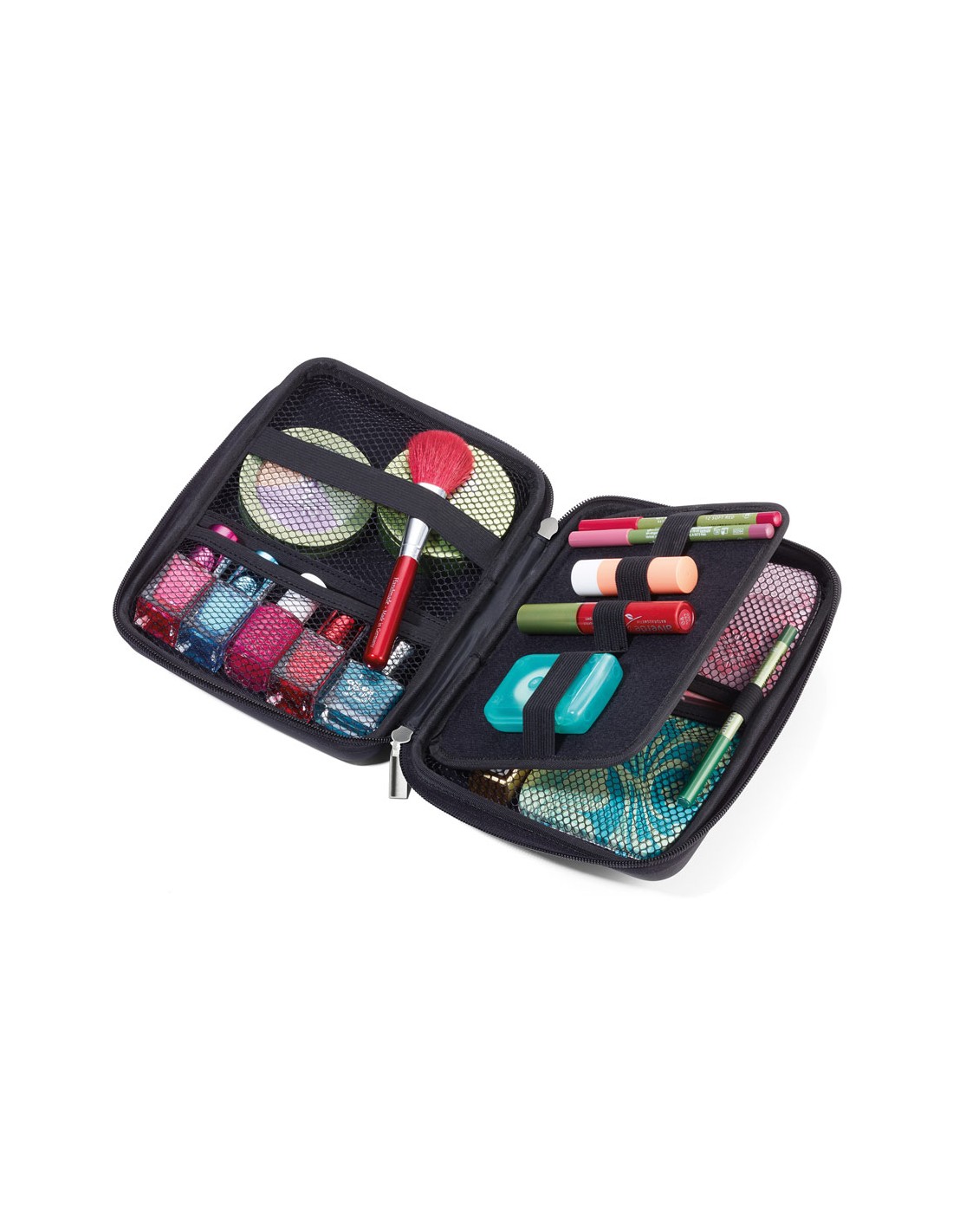 Étui de rangement avec fermeture à glissière, 3 poches intérieures, 6 boucles à bande élastique, intercalaire (intérieur), similicuir, velours, argenté/noire
