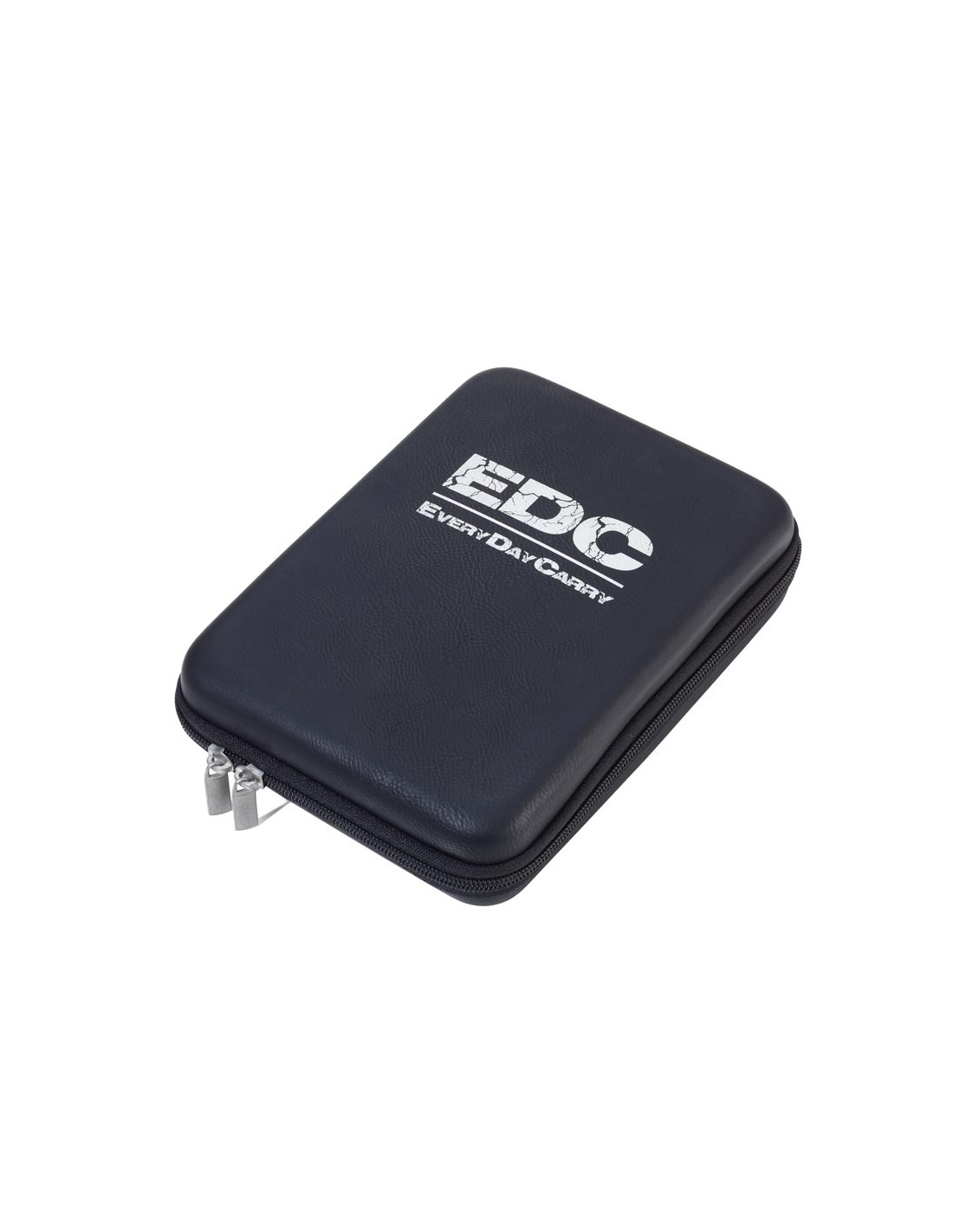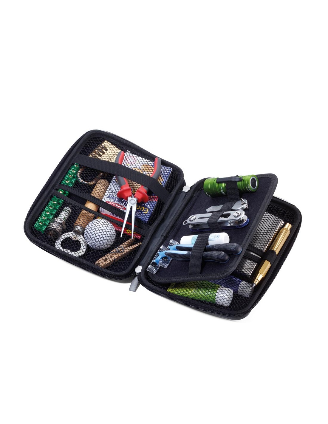 Étui de rangement avec fermeture à glissière, 3 poches intérieures, 6 boucles à bande élastique, intercalaire (intérieur), similicuir, velours, argent/noire