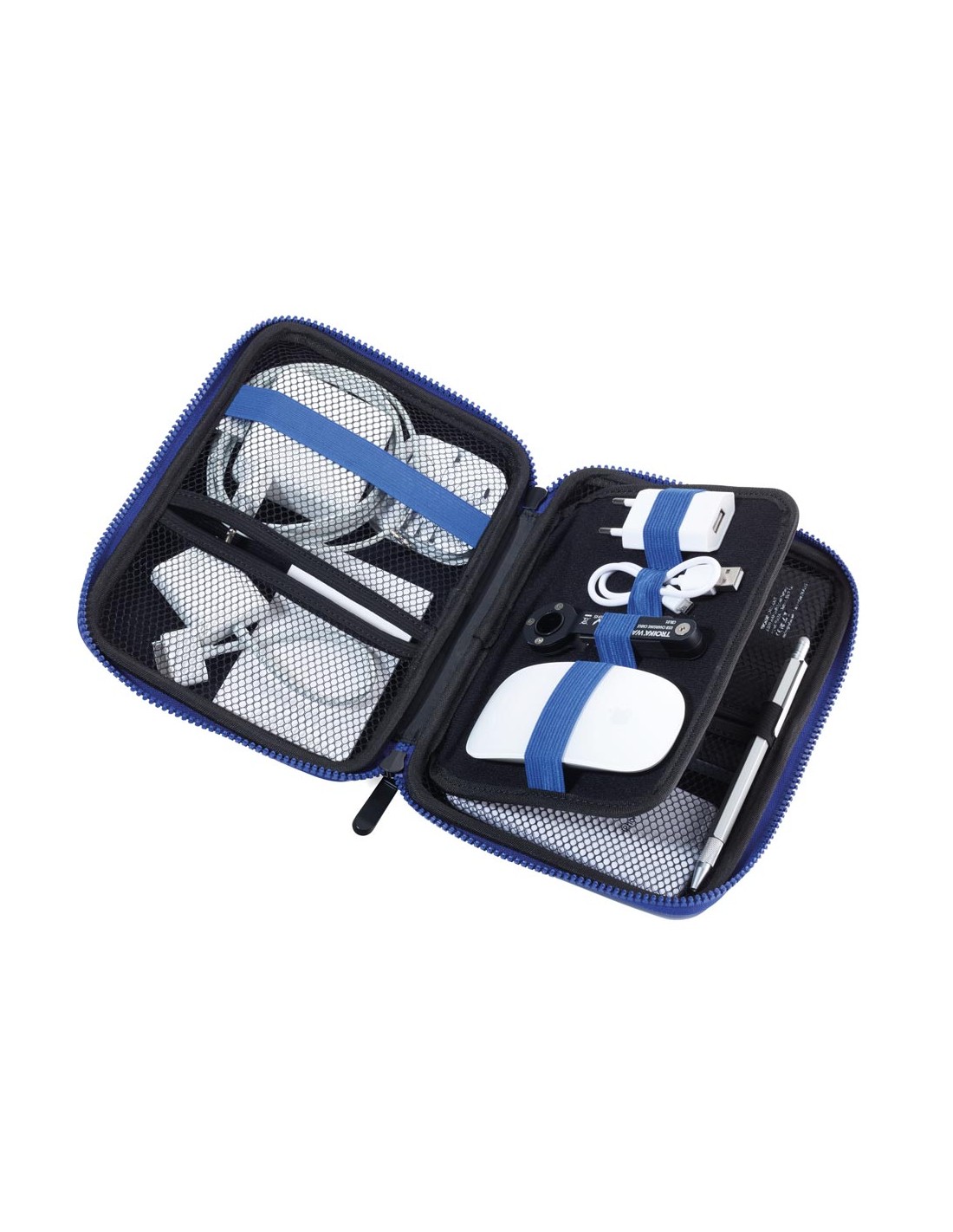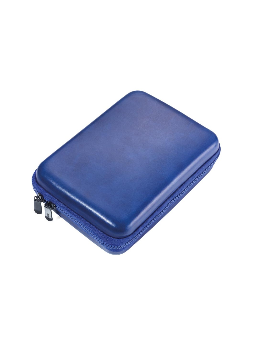 Étui de rangement avec fermeture à glissière, 3 poches intérieures, 6 boucles à bande élastique, intercalaire (intérieur), similicuir, velours, bleu/noire