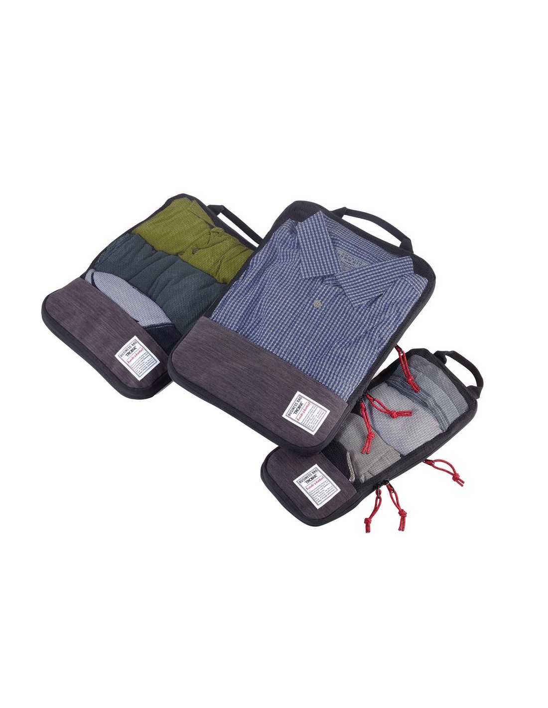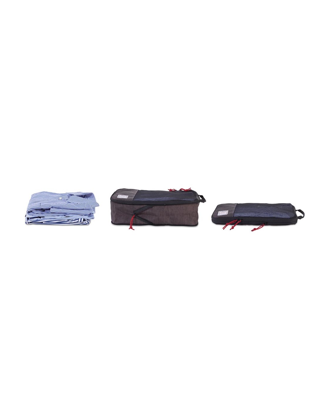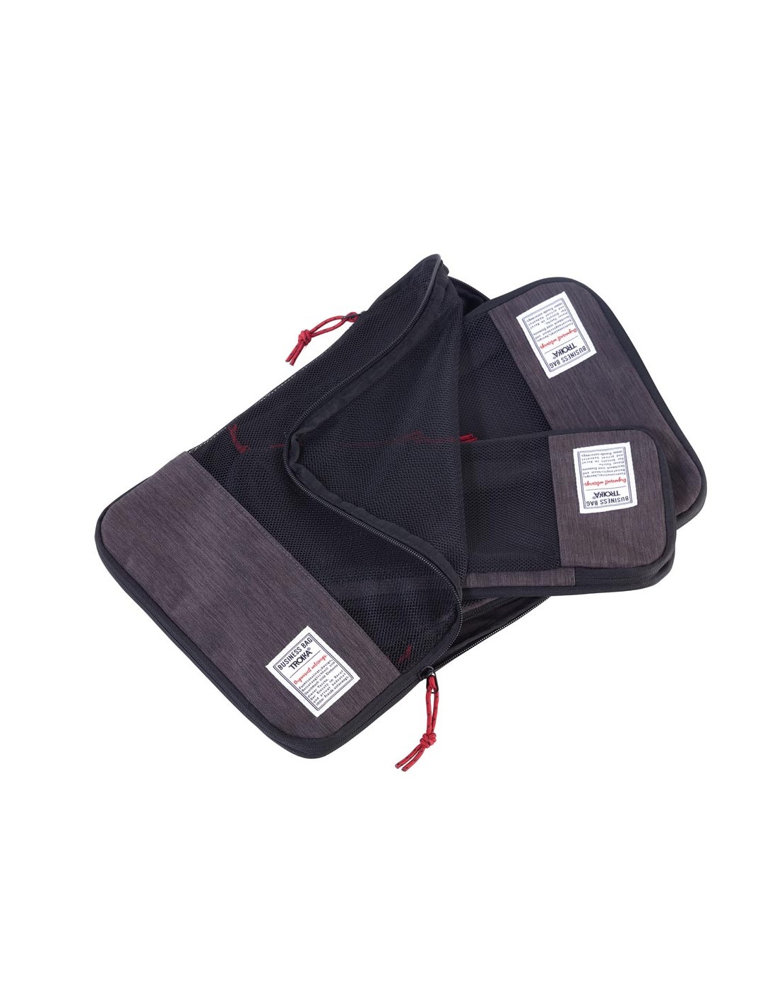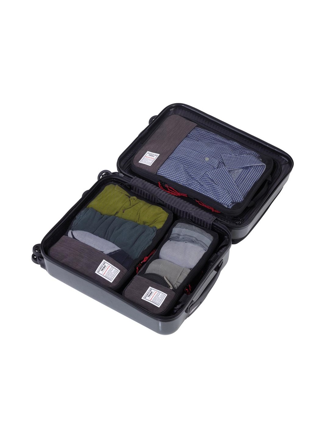 Ensemble de sac de compression de voyage, 3 sacs de rangement à fermeture éclair et un fermoir de compression supplémentaire pour un rangement des vêtements dans la valise et dans le sac à dos peu encombrant, ordonné et sans pli, 3 tailles : L (chemises et pantalons), M (t-shirts), S (dessous et chaussettes), chacune avec une fenêtre en filet et une poignée, polyester, anthracite/noir
