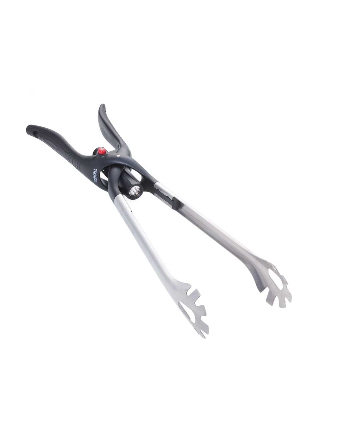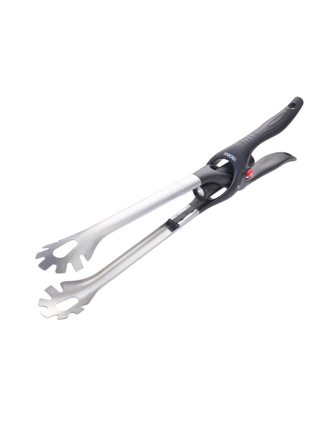Pince à barbecue avec lampe de poche amovible, LED blanc chaud, pile AA incl., pince verrouillable, en toute sécurité alimentaire (à tester LFGB), poignée en plastique résistant à la chaleur, acier inoxydable 430, plastique, mat, argenté/noire/rouge