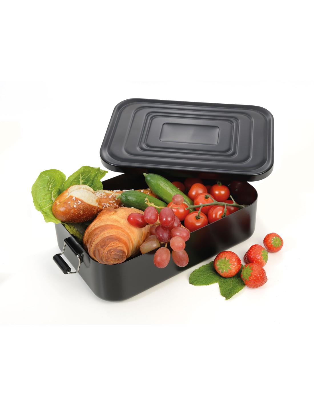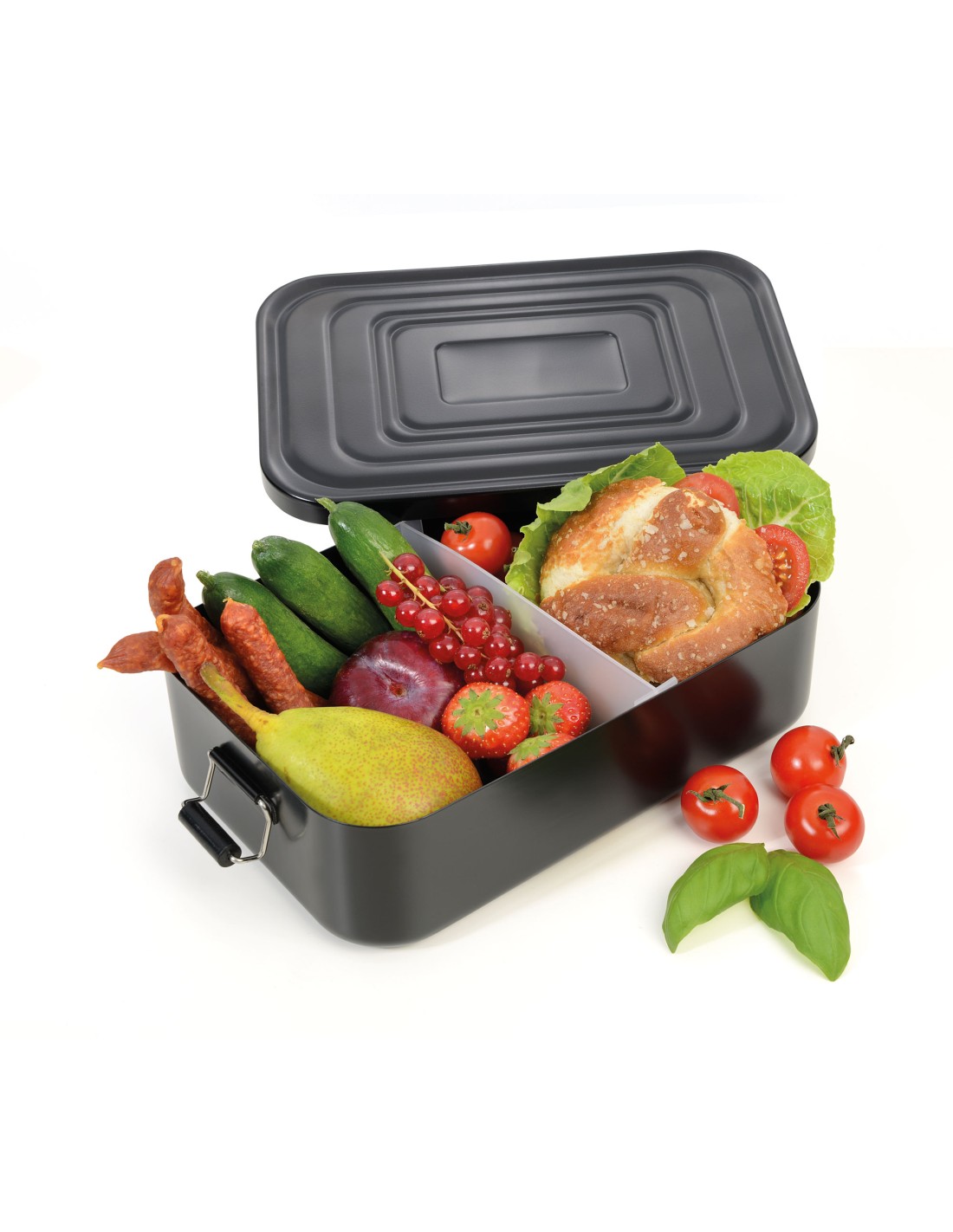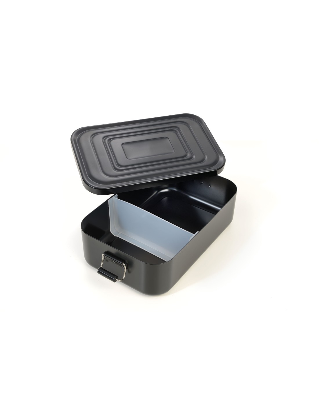 Boîte repas "gamelle" XL avec couvercle swingtop à crochets, lavable au lave-vaisselle, avec cloison plastique amovible et mobile, en toute sécurité alimentaire, autre utilisation : comme coffre-fort à clés ou boîte de rangement pour les ustensiles, aluminium, noire