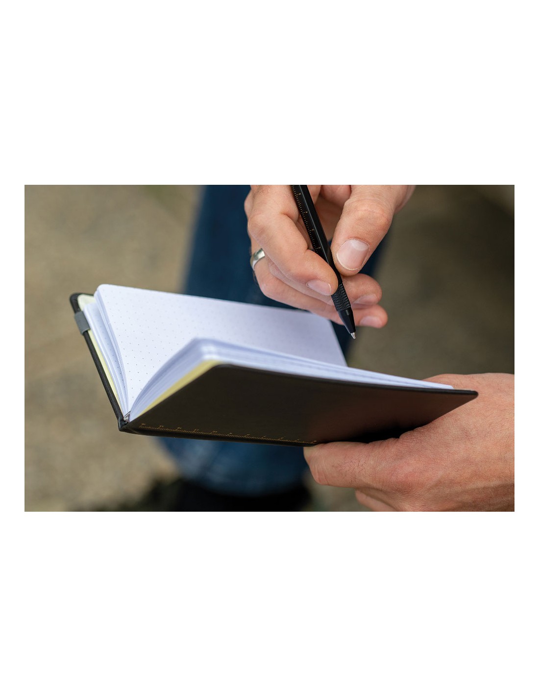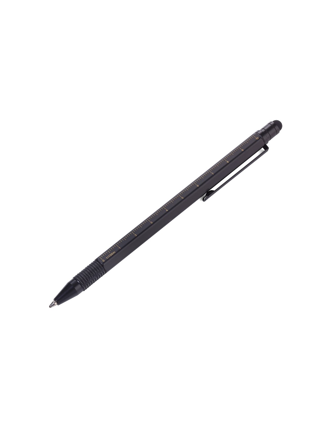 Stylo à bille multitâche (mince), règle en centimètres et en pouces, échelle 1:20 m/1:50 m, stylet, mine noire dea grande capacité, aluminium, laiton, laqué, mat, noire/or