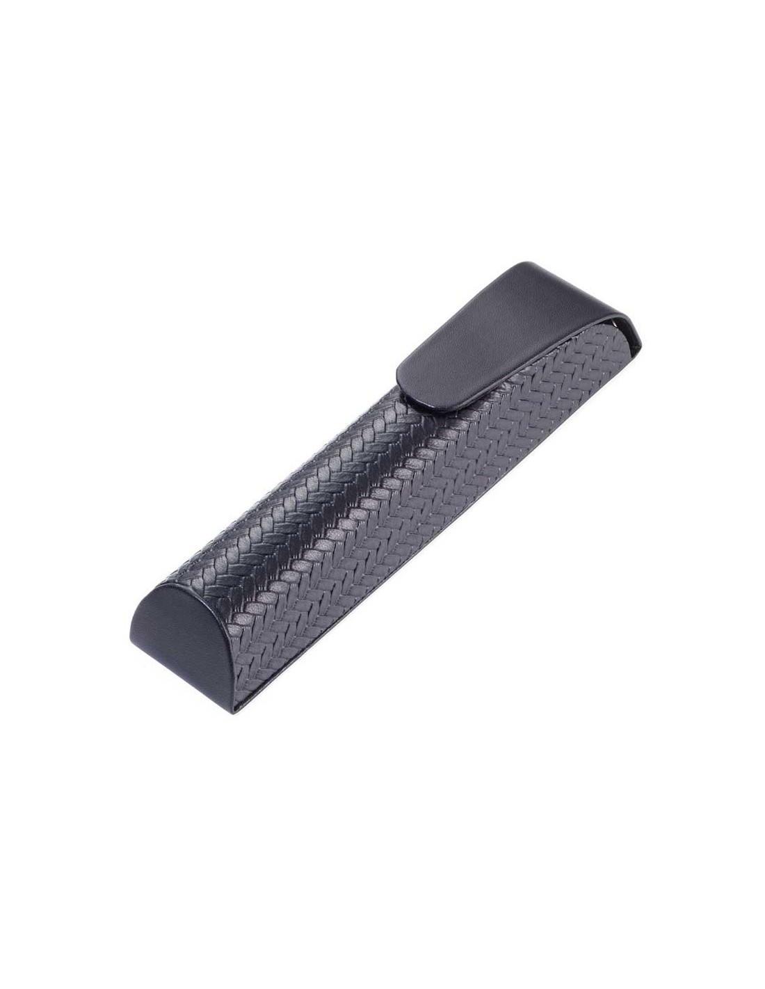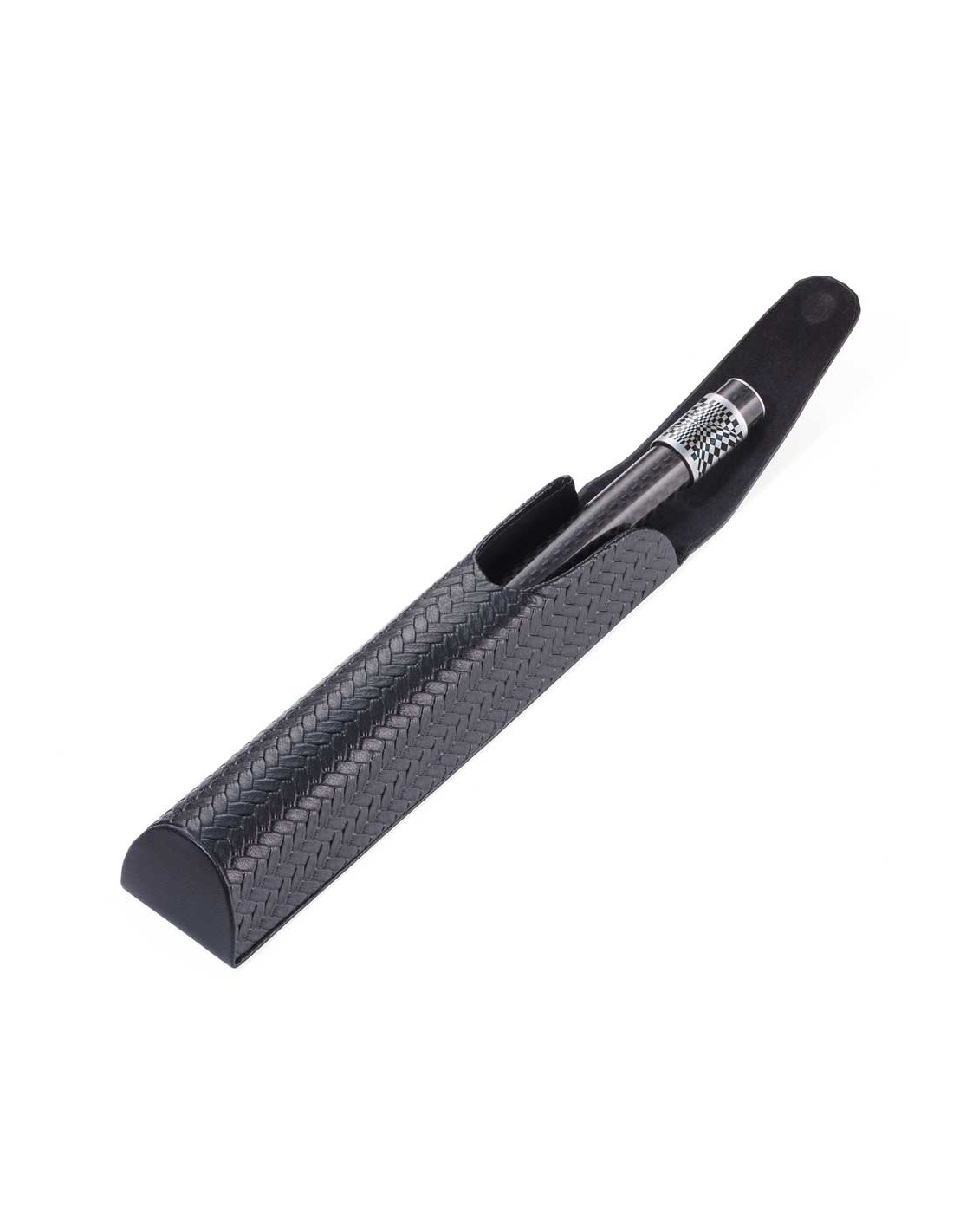 Stylo à bille avec anneau métallique rotatif pour jouer et se détendre, mine noire, incl. trousse avec fermeture magnétique, vérifiez le motif sur I'anneau métallique rotatif, carbone, laiton, similicuir, chrome, mat, argenté