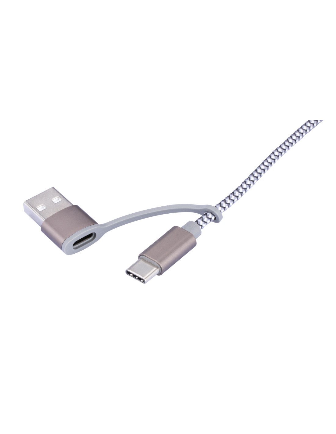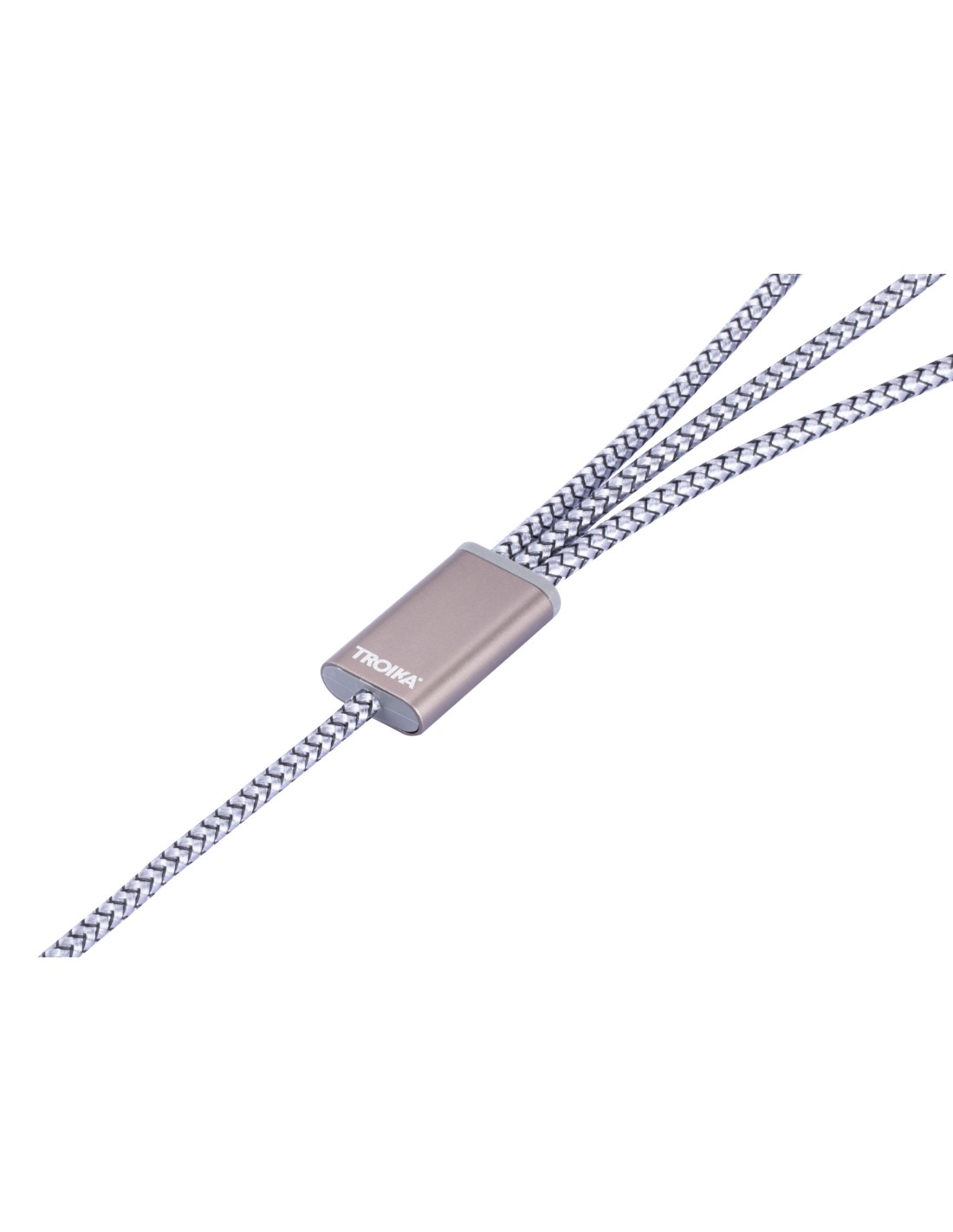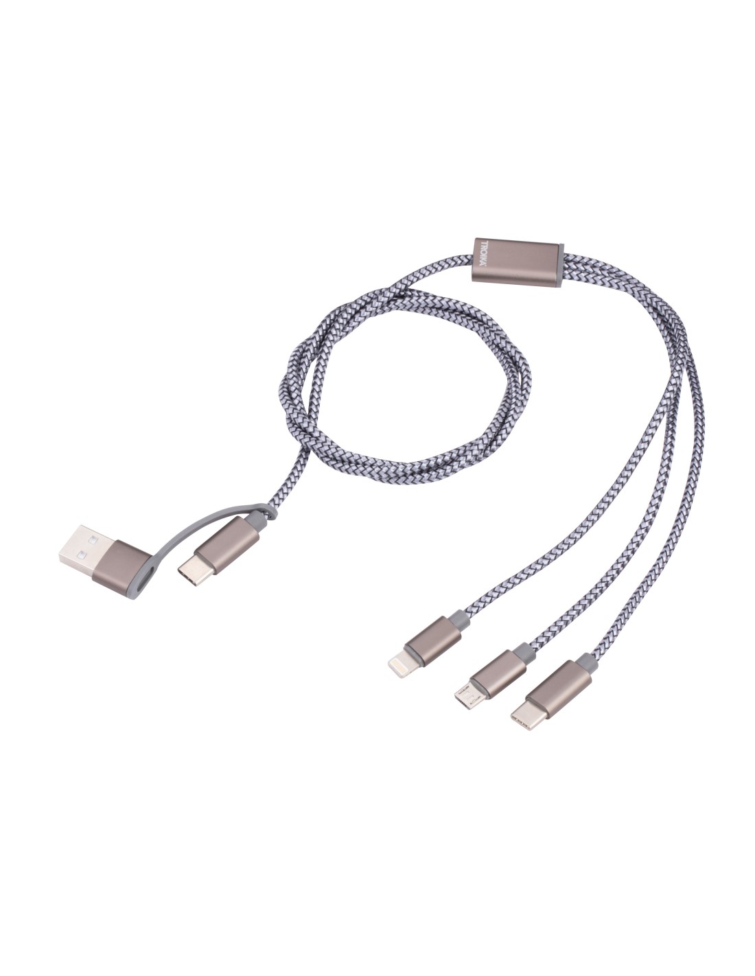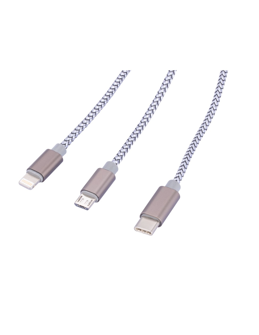 Câble de charge 3 en 1 - pour charger simultanément jusqu'à 3 appareils via USB, USB / USB-C vers Micro-USB / Lightning / USB-C, câble enduit de textile, 1 m de long, adapté pour une charge rapide (jusqu'à env. 5V / 2.5A ), 22 AWG, métal, nylon, mat, gris