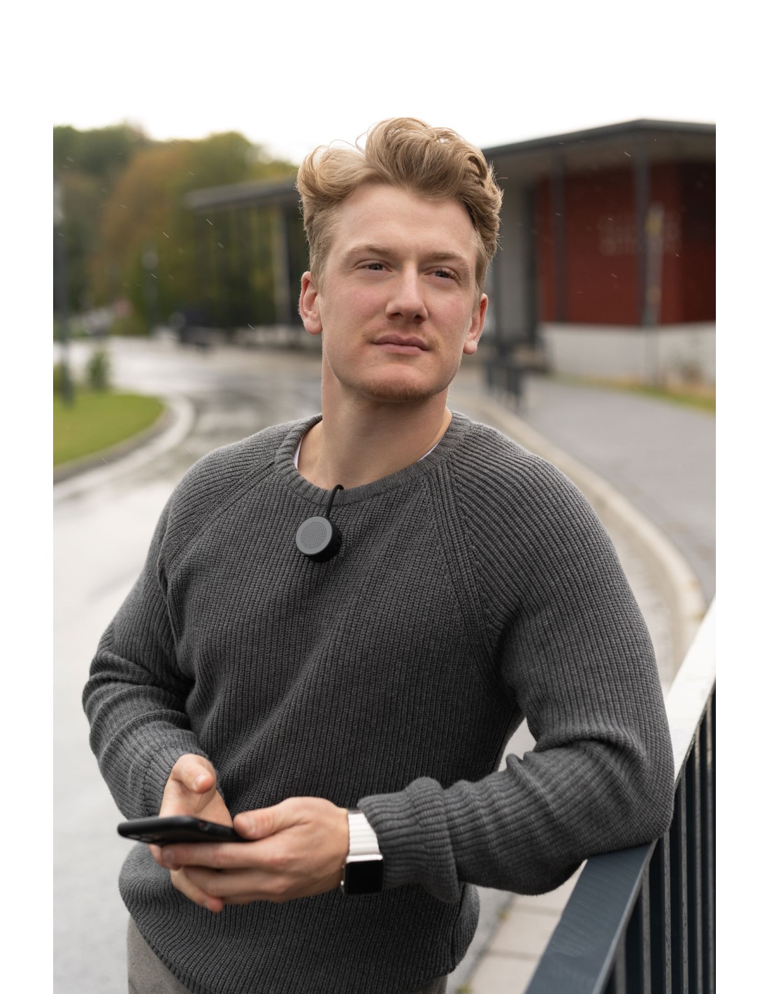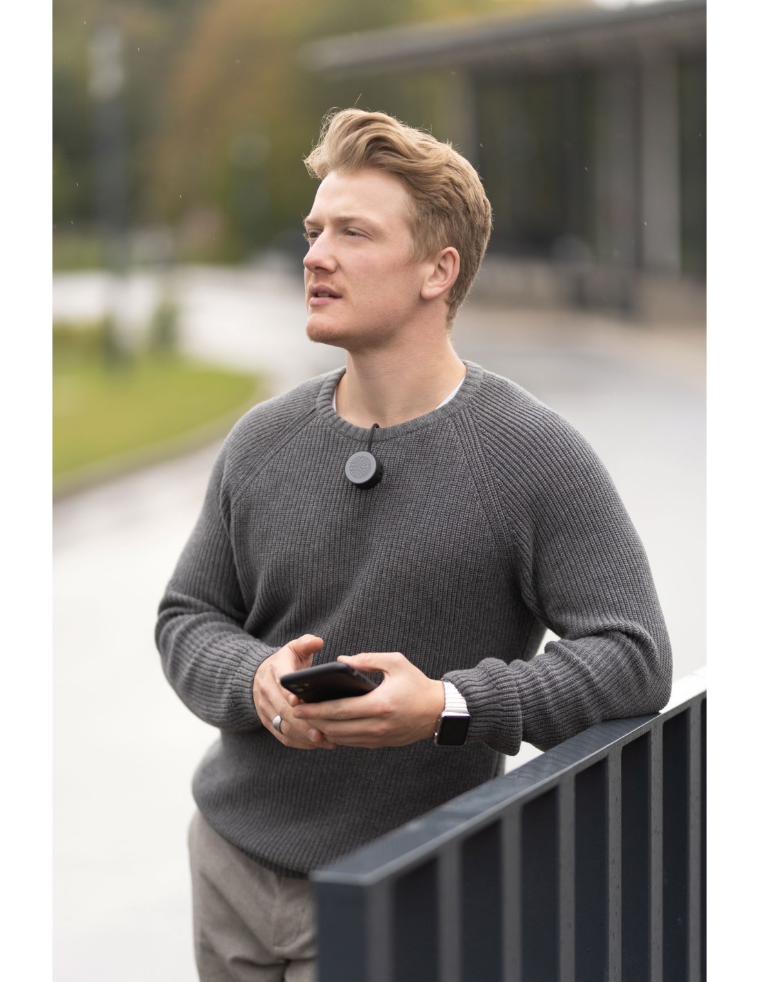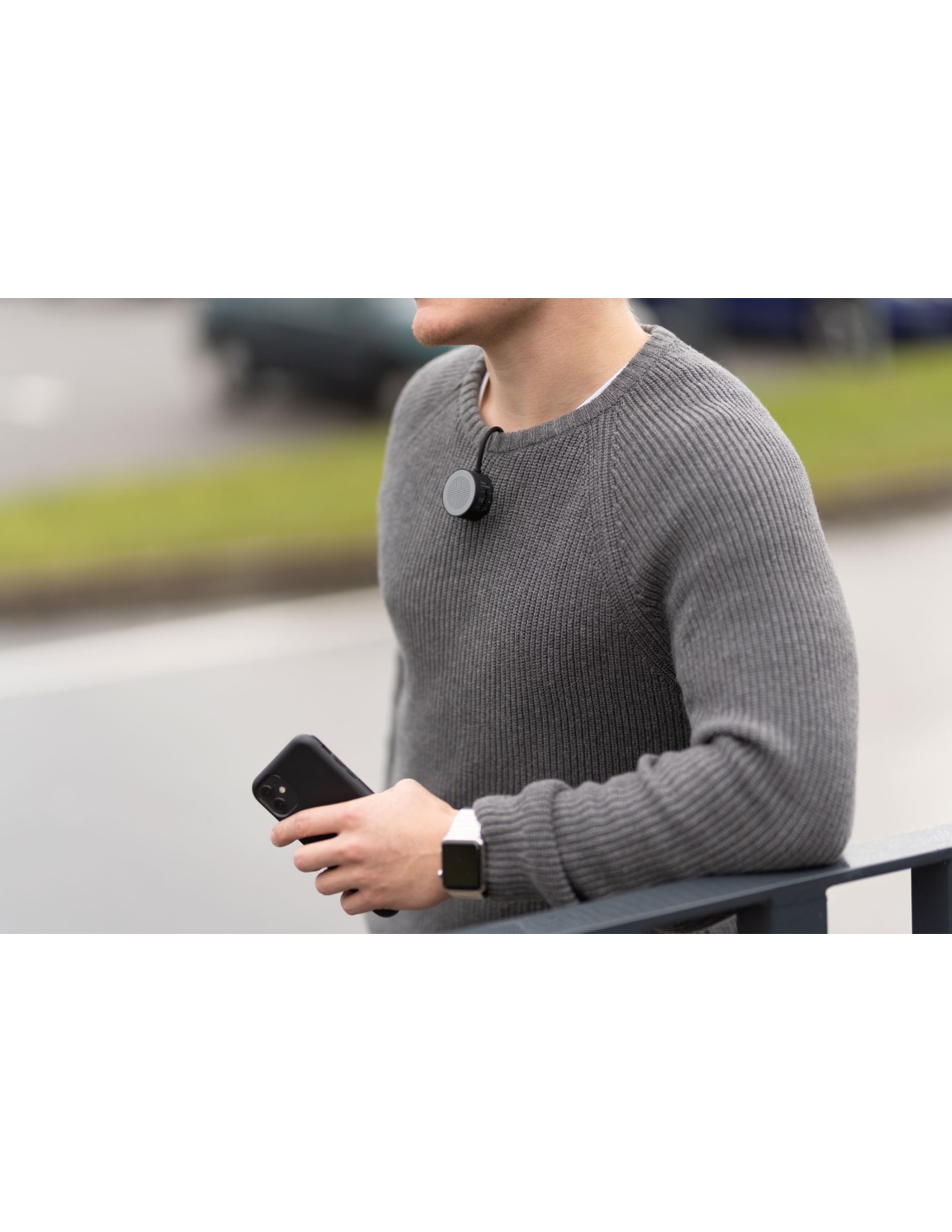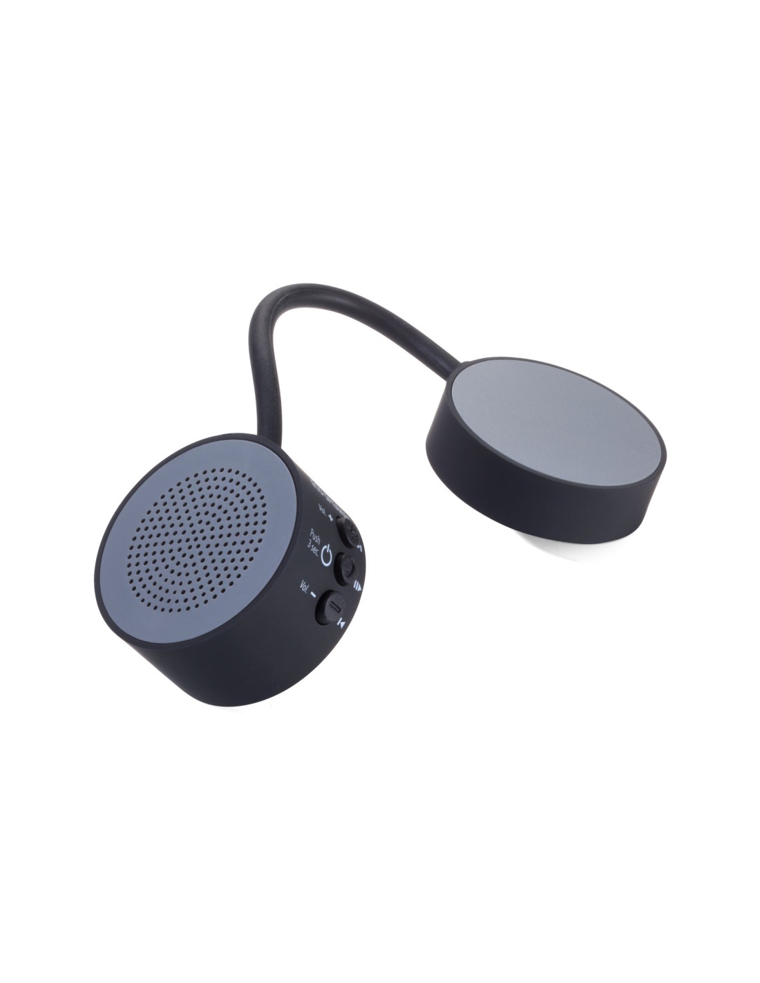 Mini haut-parleur/système mains libres pour le sport et les loisirs, sans fil, avec un fort aimant pour la fixation, rond, écologique puisque rechargeable via USB (3,7 volt - 0,22 watt), batterie lithium polymère 300 mAh, se connecte automatiquement par une connexion de données sans fil (5.0) avec smartphone ou autres appareils portables, son précis, volume allant jusqu'à 65 dB (décibel), portée allant jusqu'à environ 10 m, durée audio maximale : environ 3 heures, temps de charge : environ 1,5 heure, commandes latérales pour la sélection de la musique, volume et appels téléphoniques, protection contre la surcharge/décharge profonde, câble de charge incl., plastique, silicone, caoutchouté, mat, gris/noire