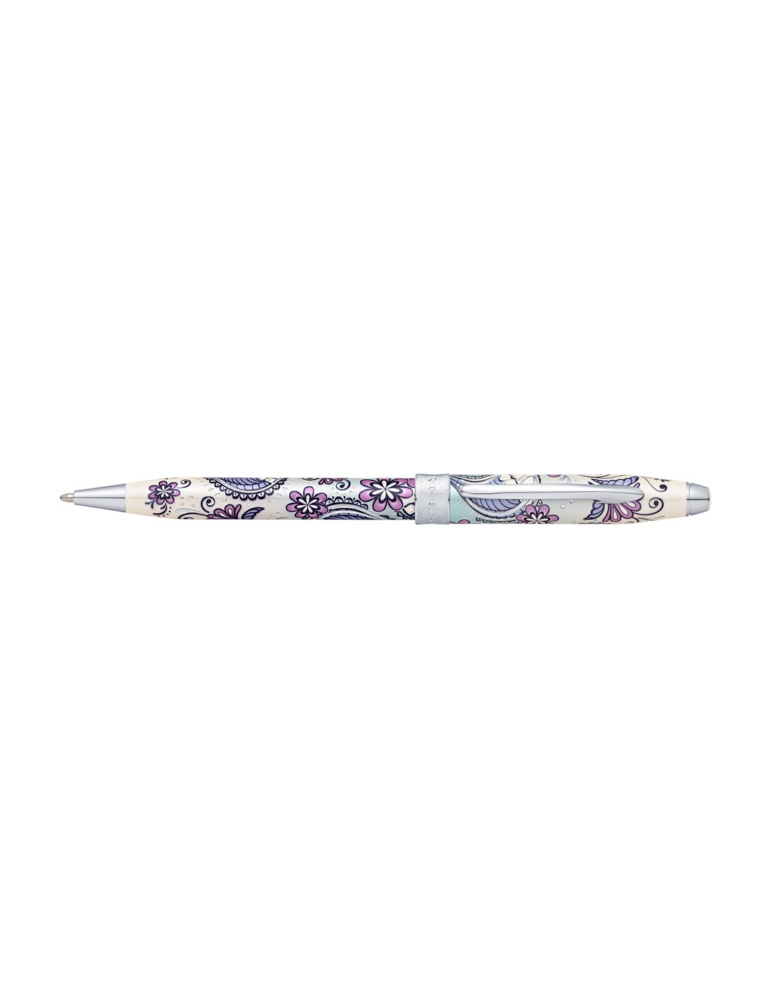Cross Botanica est sûr de fasciner avec ses motifs floraux sur une laque ivoire nacré. Des couleurs luxuriantes se mêlent à des vrilles de reflets métalliques incrustés, créant contraste et profondeur. Cross Botanica Stylo-bille, orchidée violette