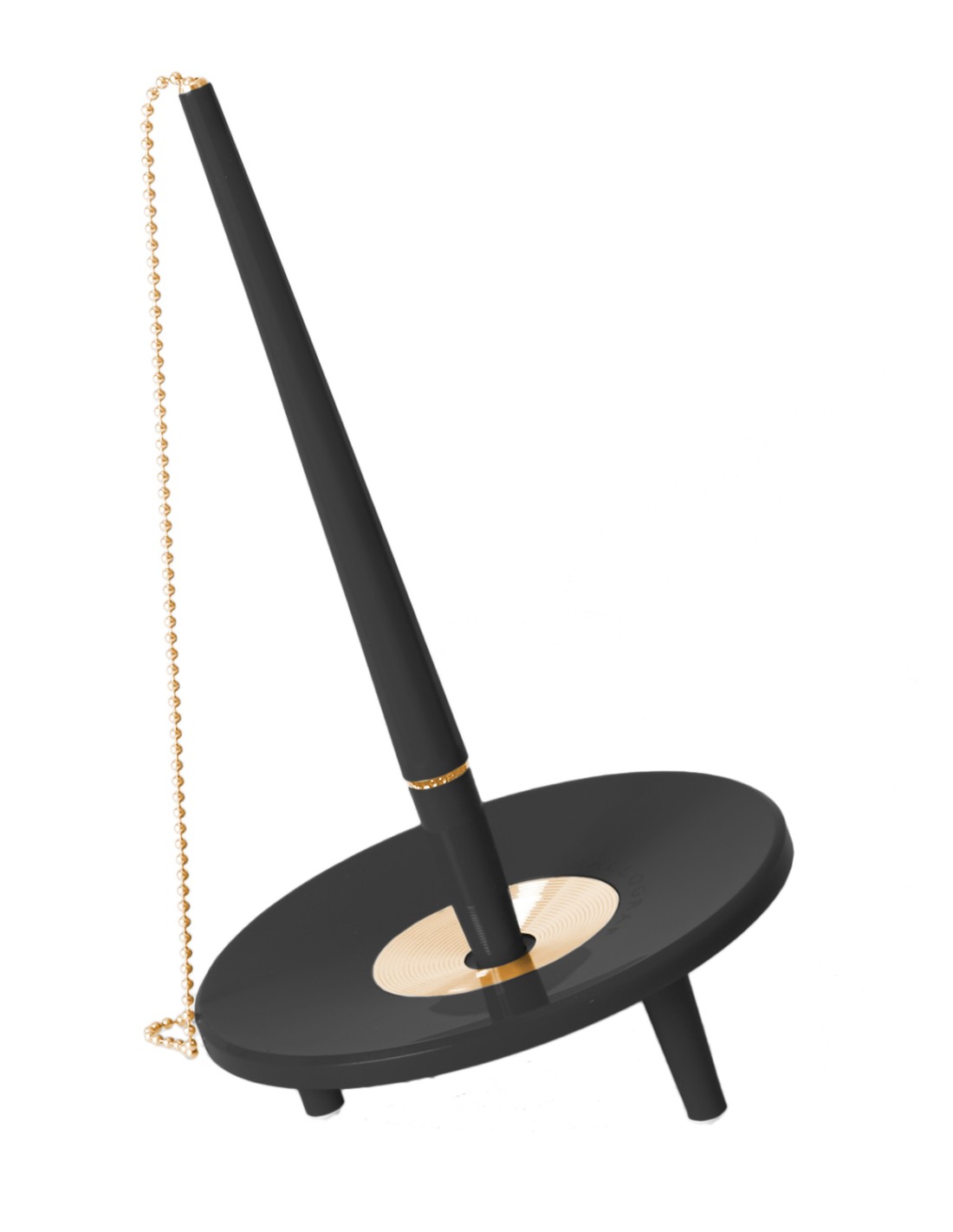 stylo à bille avec support en acétate de cellulose muni de 4 pieds en caoutchouc antidérapant, Desk Set avec chaînette, longueur 450 mm, couleur de l'encre bleue, rechargeable.