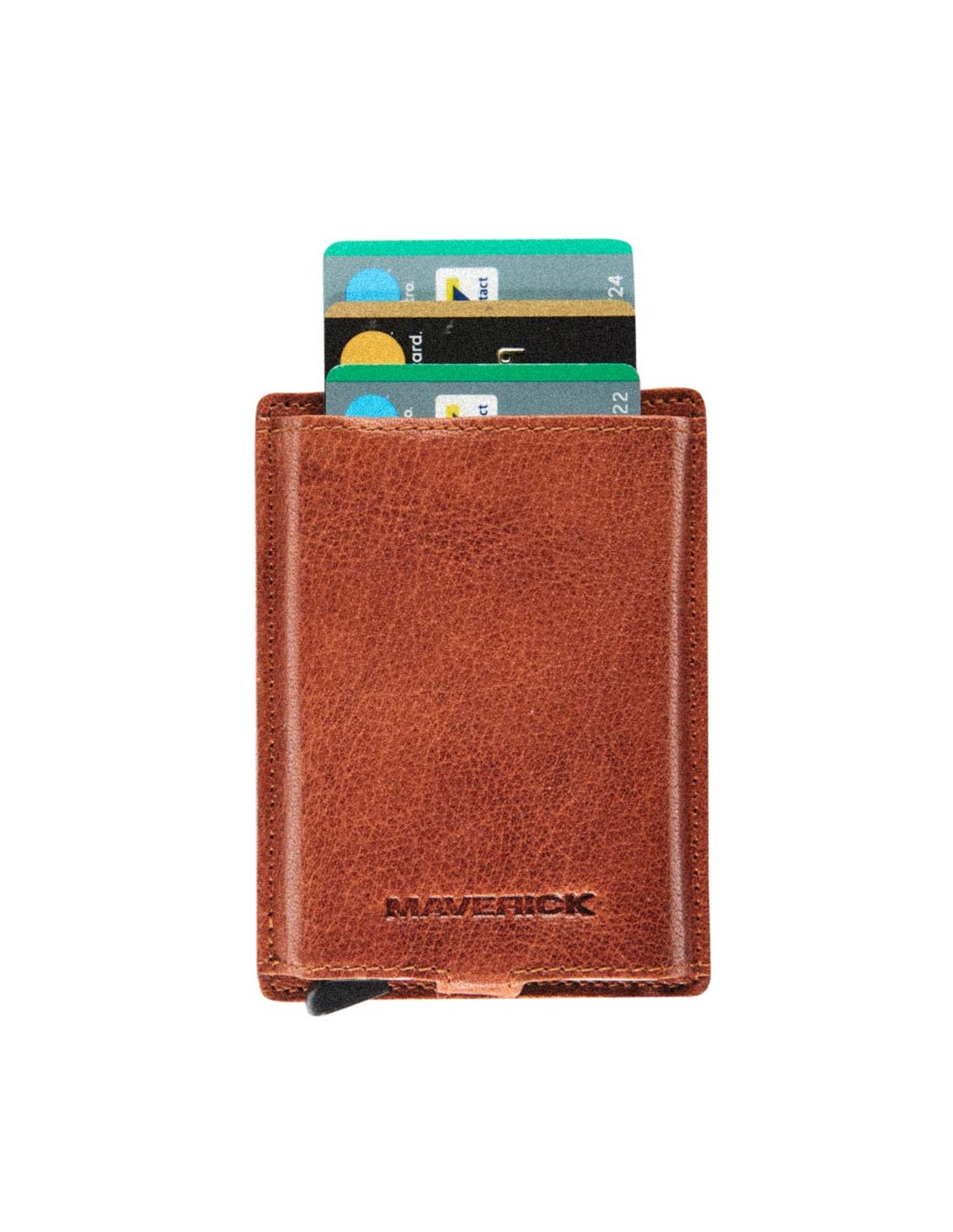 MAVERICK ROUGH GEAR PROTÈGE CARTE slim cuir anti-piratage - cognac