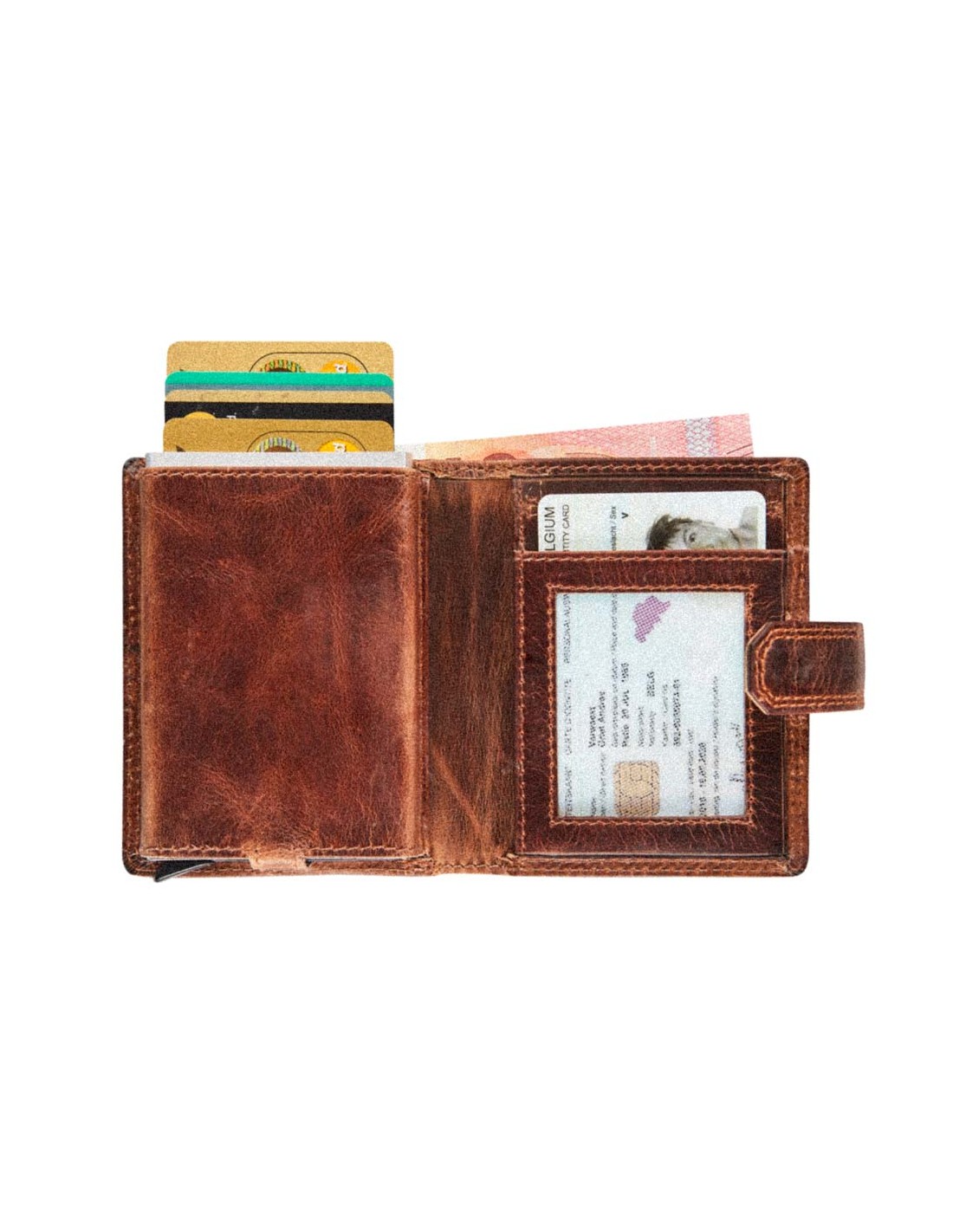 Étui pourvu d’un levier qui soulève les cartes. Protège également vos cartes de paiement contre le vol électronique. Les étuis en cuir sont pourvus d’un logement en aluminium avec protection RFID. Comment ça marche ? Vos cartes de paiement et d’identité sont munies d’une puce. Celle-ci peut être lue via l’identification par radiofréquence. Ce protège-cartes bloque l’énergie électromagnétique. Pour que des inconnus ne puissent jamais lire ou copier vos cartes.