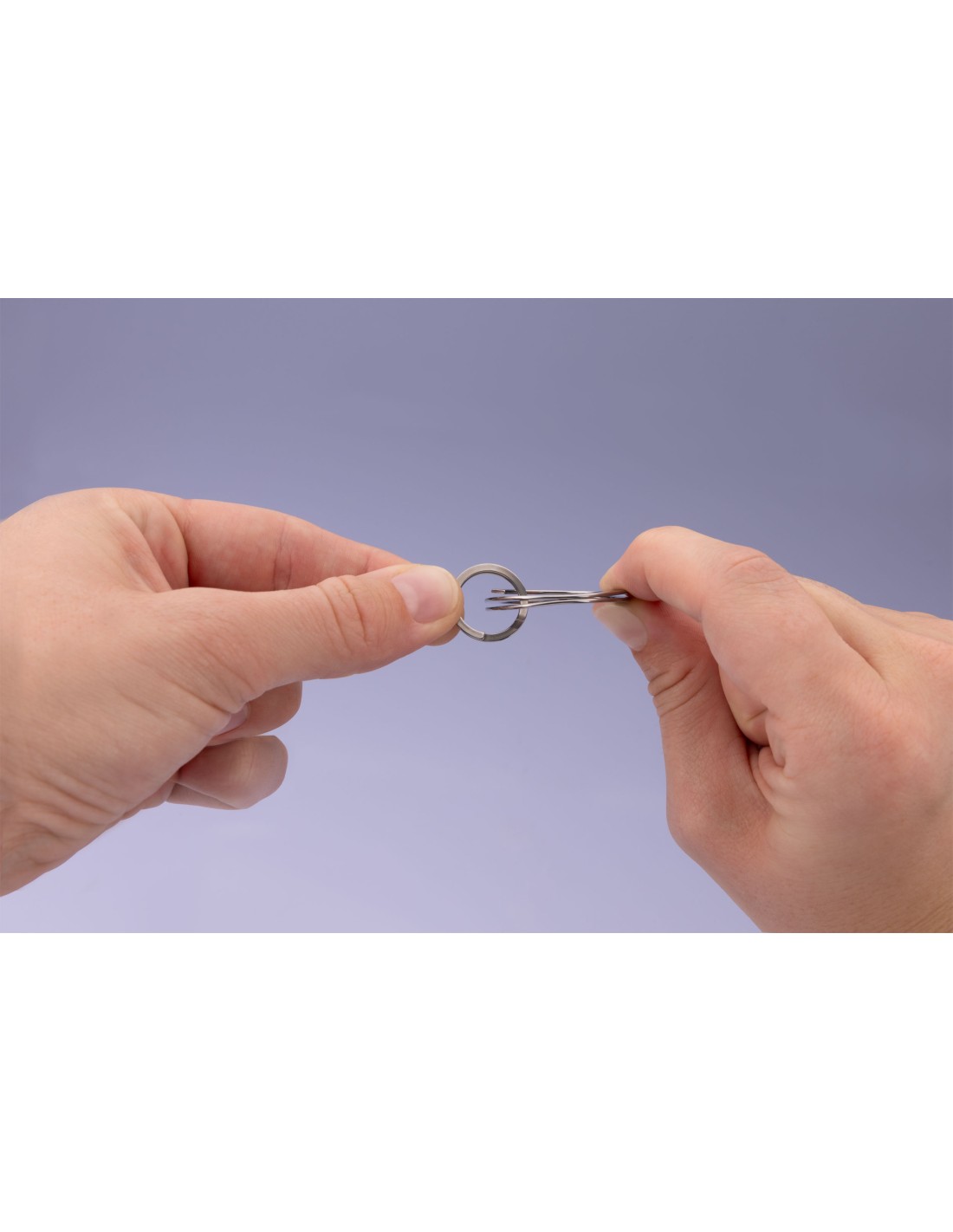 Porte-clés, fixation rapide & simple des clés grâce à un mécanisme d'ouverture breveté, y compris 3 anneaux plus petits également avec mécanisme breveté, protège l'ongle, acier inoxydable, poli, mat, argenté
